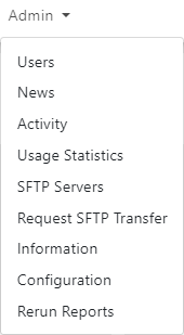 The Admin menu is available for all users. However, many of the pages are only available to Super Users and Lottery users.